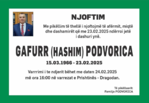 Pas një sëmundje të rëndë, të dielën në moshën 58 vjeçare ka ndërruar jetë Gafurr Podvorica.