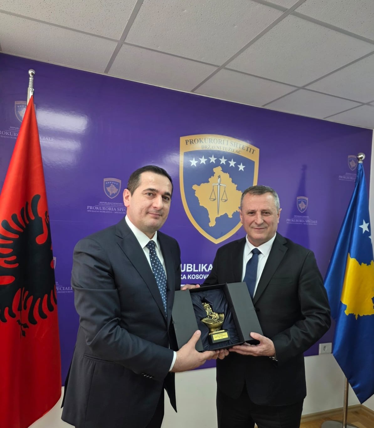 Kryeprokurori i Prokurorisë Speciale të Kosovës, Blerim Isufaj, priti të hënën në një takim pune drejtuesin e Strukturës së Posaçme Kundër Korrupsionit dhe Krimit të Organizuar, Klodjan Braho.
