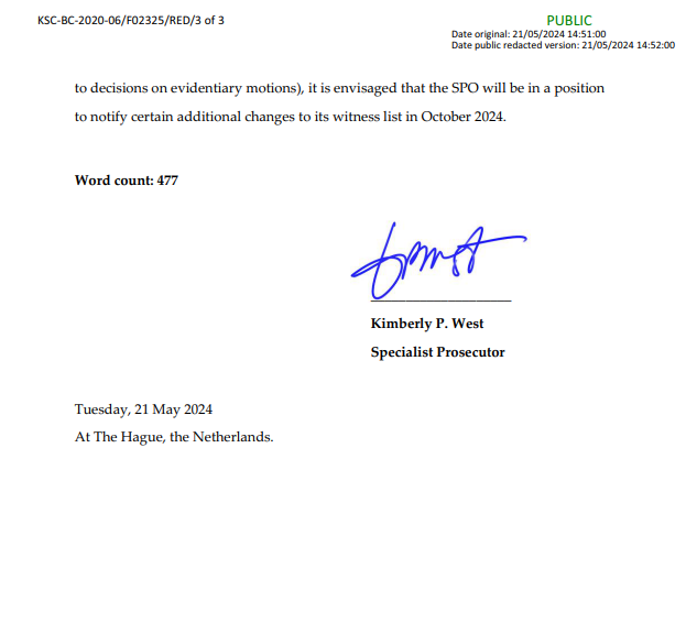 Sipas një njoftimi, Dhomat e Specializuara do të paraqesim me shkrim deklaratat e 13 dëshmitarëve, të cilët nuk do të dëshmojnë direkt në Gjykatë./Arbresh.info/
