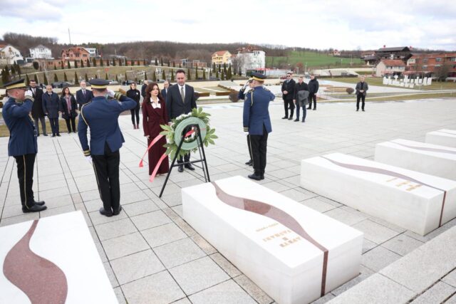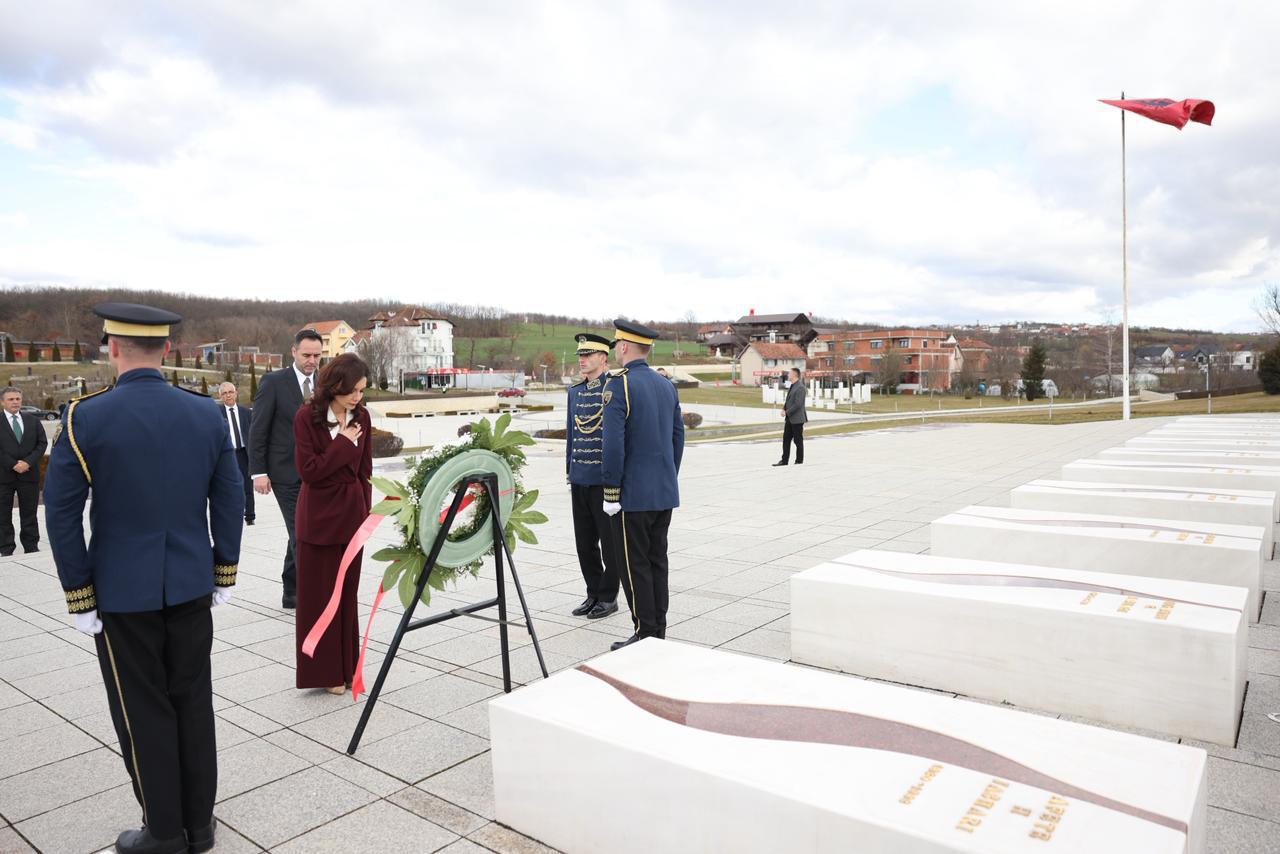 Së bashku me zëvendëskryeministrin e parë dhe njëherësh ministrin për Punët e Jashtme dhe Diasporën të Kosovës, Glauk Konjufca, kryen homazhe në Kompleksin Memorial “Adem Jashari”, aty ku sakrifica e një familjeje u kthye në themel të një shteti.