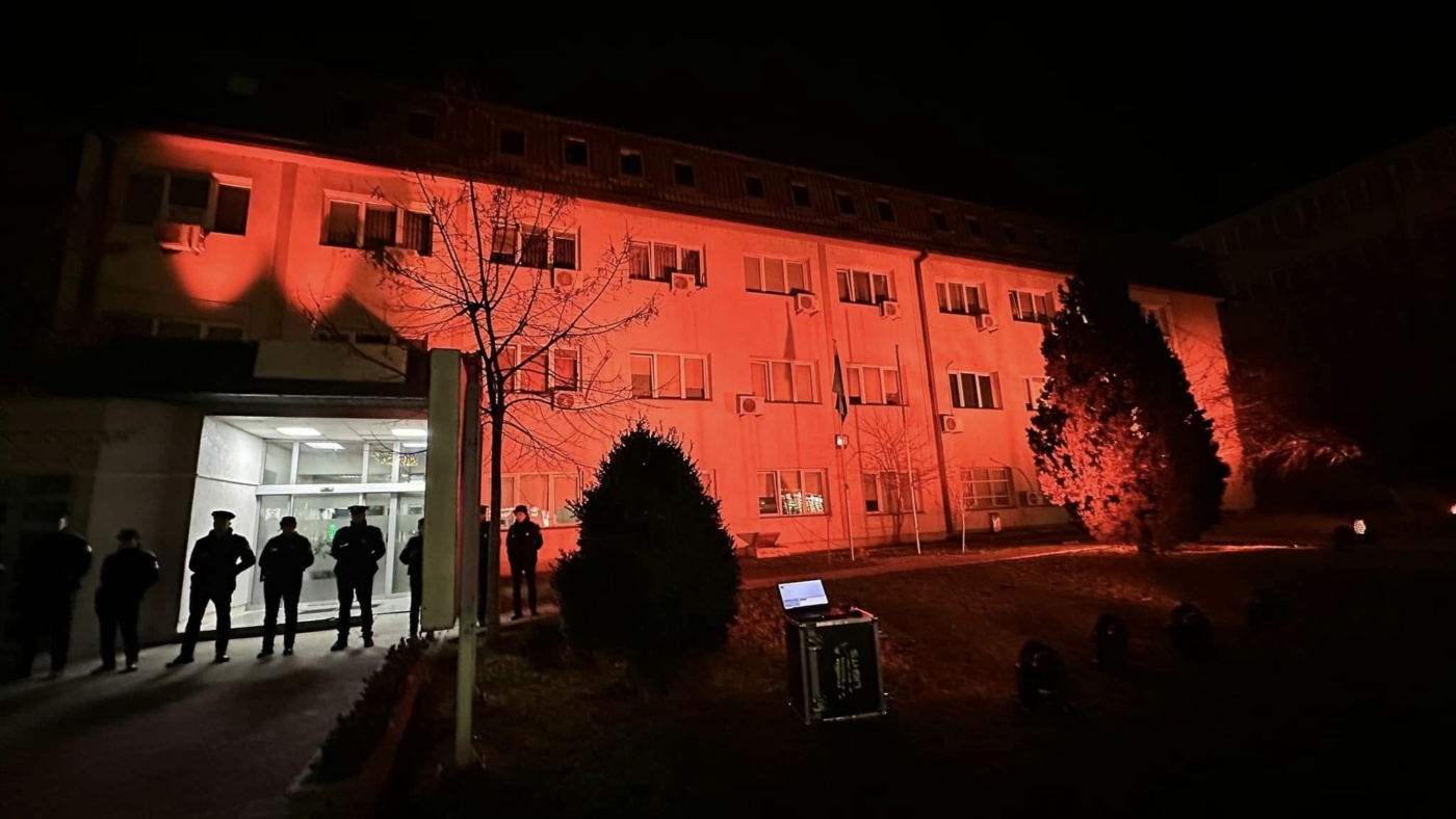 Objekti i Stacionit Policor Qendra në Prishtinë është ndriçuar me ngjyrë portokalli si pjesë e fushatës “16 Ditët e Aktivizmit Kundër Dhunës me Bazë Gjinore.”