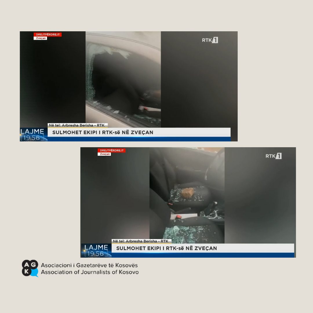 Siç njofton AGK, gjatë raportimit të drejtpërdrejtë në edicionin qendror të lajmeve nga kjo komunë, gazetarja Arbresha Berisha, ka njoftuar se disa persona kanë gjuajtur me tulla në drejtim të veturës, si dhe i kanë shpërthyer gomat. Fatmirësisht, nuk ka të lënduar.