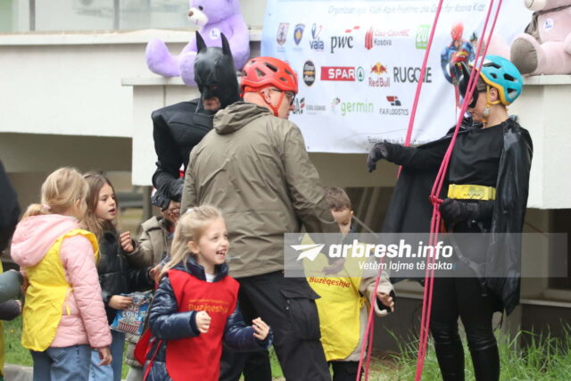 Fëmijët e shtruar në Klinikën e Pediatrisë sot patën një ditë ndryshe, teksa superheronjtë e filmave të animuar “zbritën” nga fasada e objektit për t’u sjellë atyre buzëqeshje dhe dhurata. Alpinistët e Klubit “Alpin Prishtina”, të veshur me kostume të personazheve të njohur, u lëshuan nga ndërtesa e klinikës dhe vazhduan më pas me shpërndarjen e dhuratave për të gjithë fëmijët.