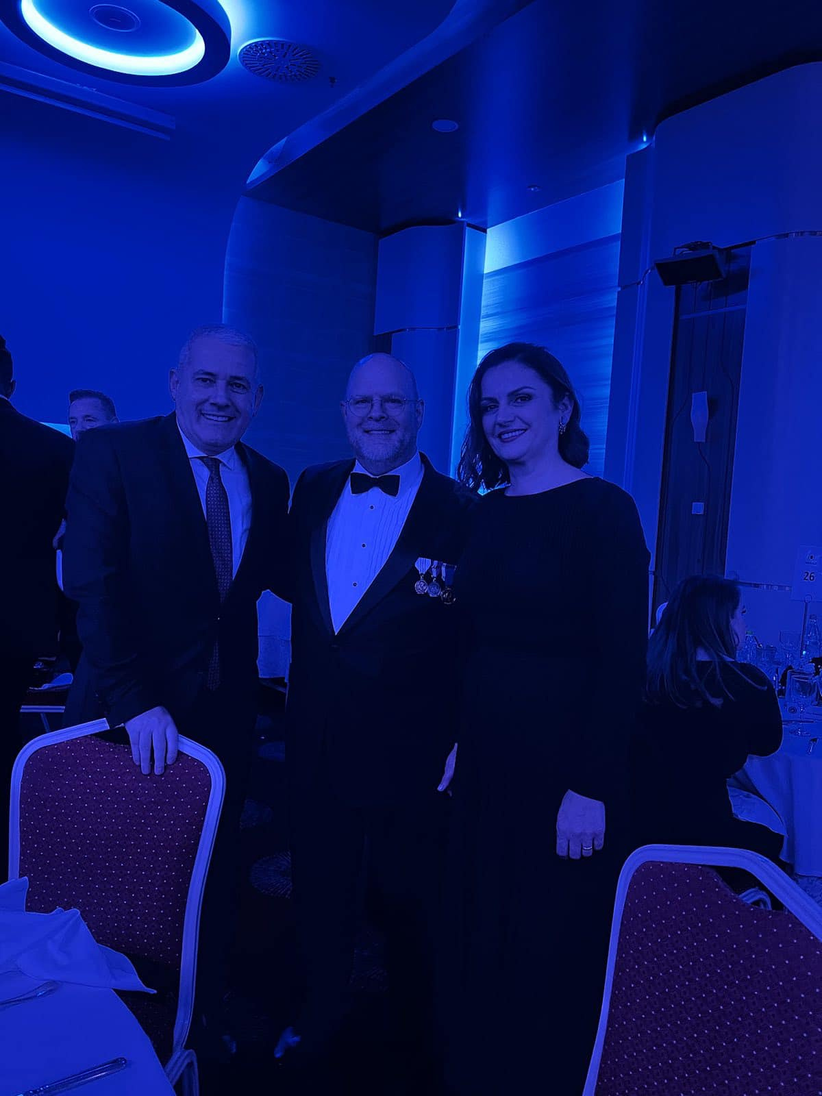 “Me Meritën patëm kënaqësinë e veçantë që sonte, bashkë me mysafirin e nderit e mikun tonë, Ambasadorin Amerikan Jeffrey Hovenier, të festojmë ditëlindjen e trupave të marinës amerikane”, shkroi Sveçla.