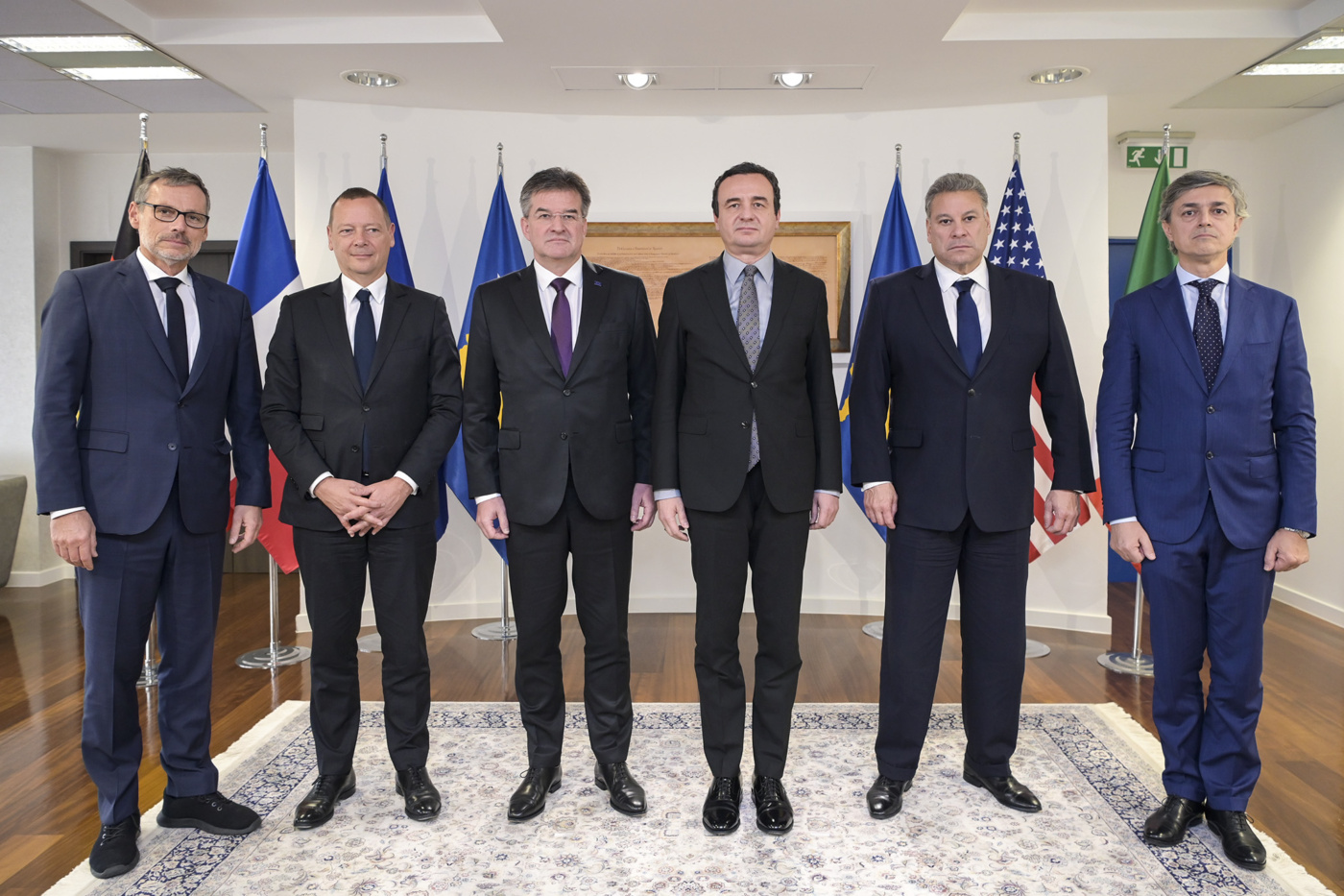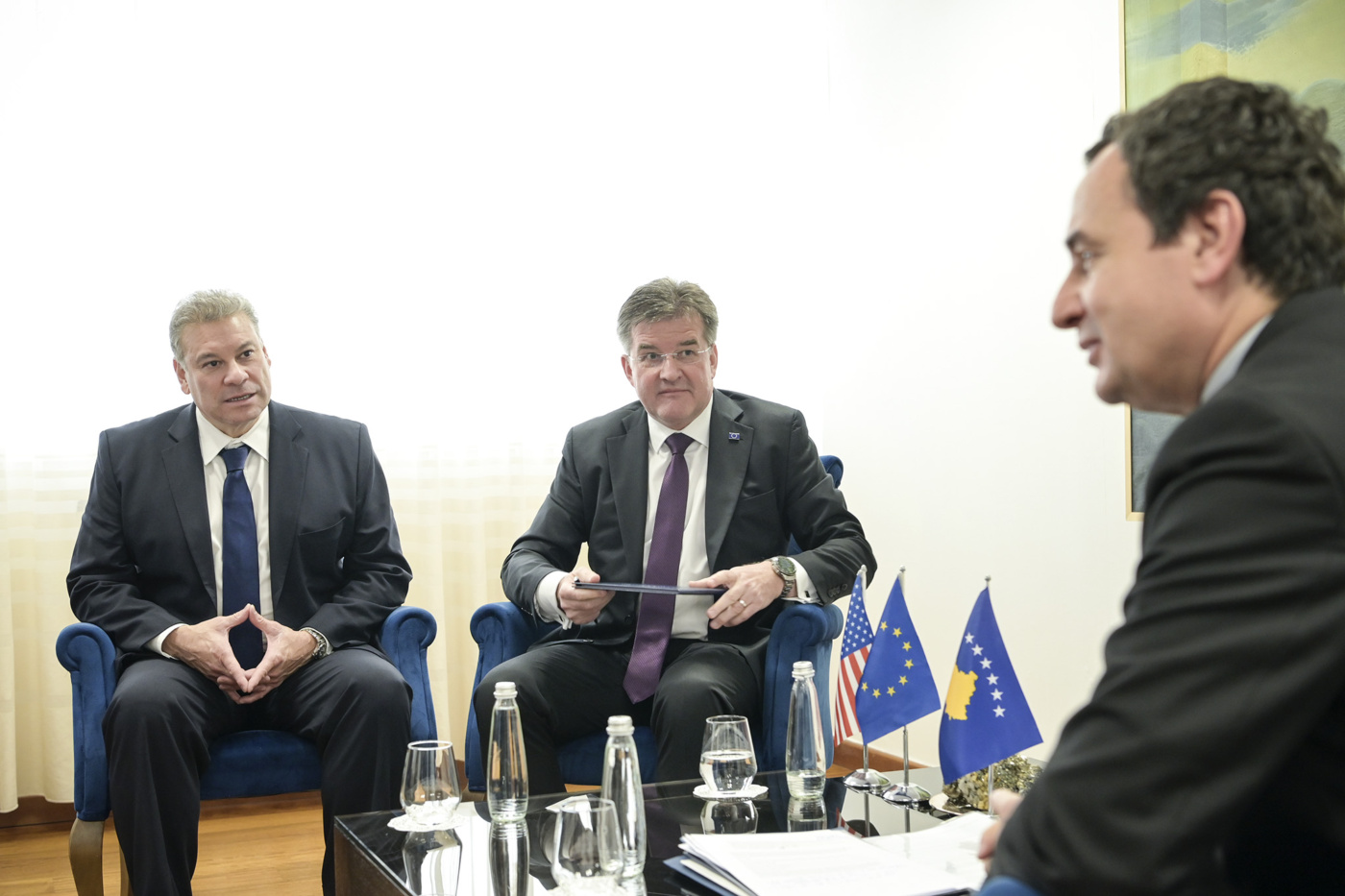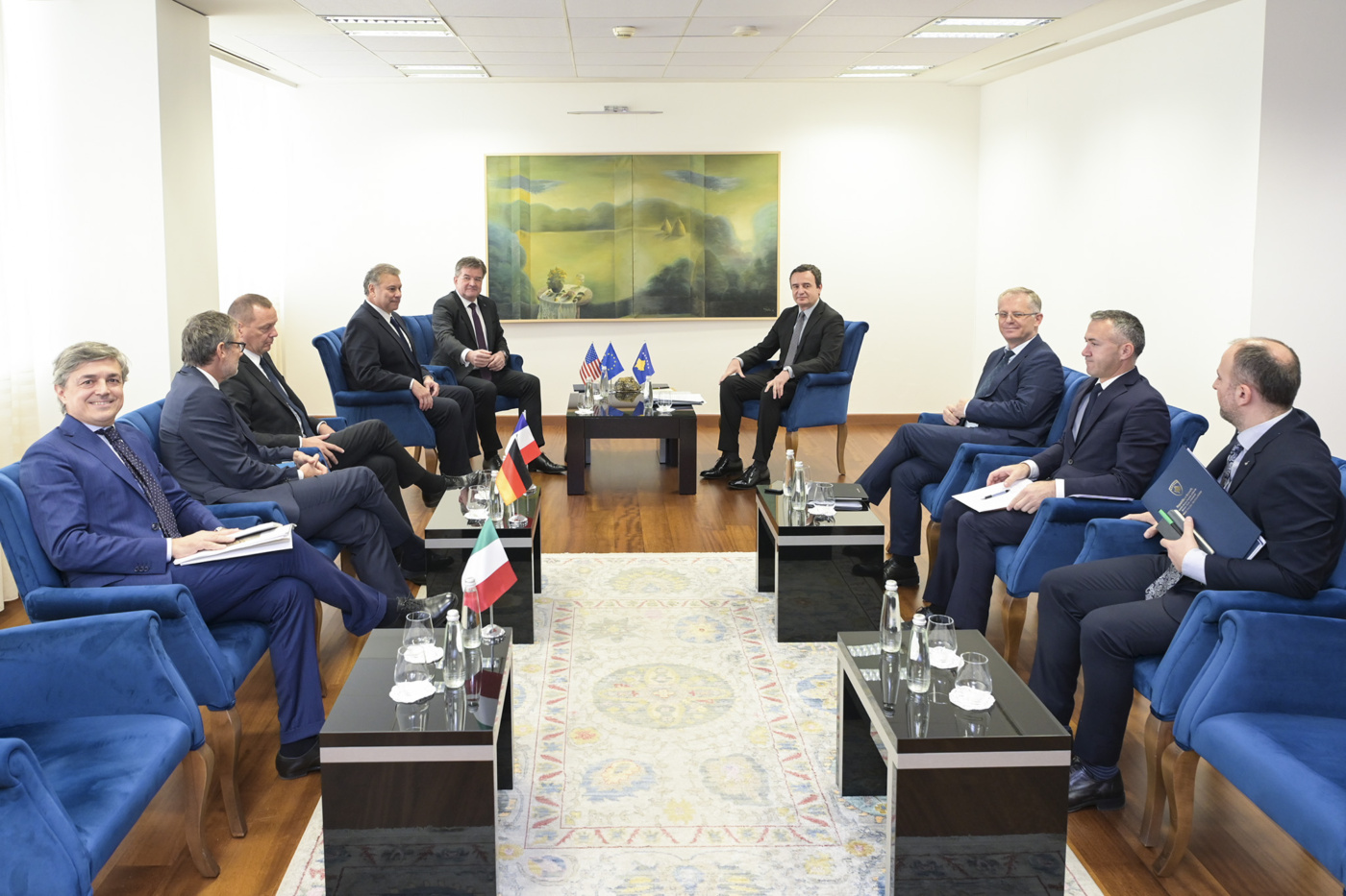 Kryeministri i Republikës së Kosovës, Albin Kurti, së bashku me zëvendëskryeministrin e parë, Besnik Bislimi, priti në takim Përfaqësuesin Special të Bashkimit Evropian për Dialogun Kosovë-Serbi, Miroslav Lajčák, Zëvendës Ndihmës Sekretarin e Shteteve të Bashkuara për Çështje Evropiane dhe Euroaziatike dhe njëherësh të dërguarin e posaçëm të Shteteve të Bashkuara të Amerikës për Ballkanin Perëndimor, Gabriel Escobar dhe këshilltarët për polikë të jashtme dhe siguri të Kancelarit të Gjermanisë, Olaf Scholz dhe të Presidentit të Francës, Emmanuel Macron, z. Jens Plötner dhe z. Emmanuel Bonne, si dhe zëvendës këshilltarin diplomatik të Kryeministres së Italisë, Giorgia Meloni, Alessandro Cattaneo.