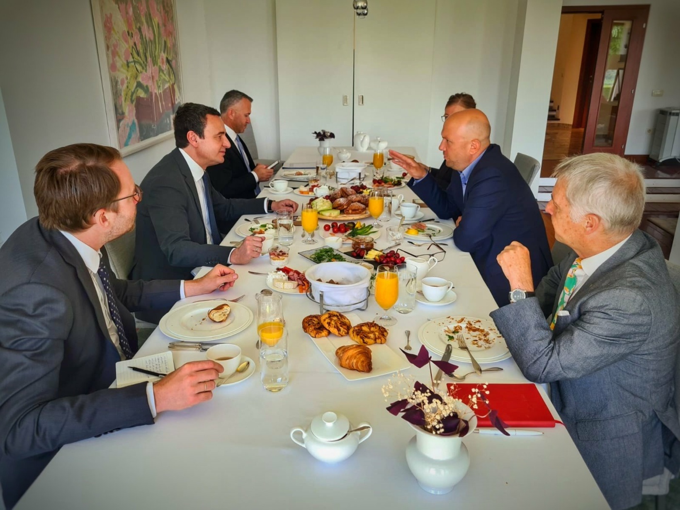 Honoured to again have as guests at my residence Honourable ?? PM @albinkurti and my ?? Western Balkan Envoy @ManuelSarrazin. Good and intense discussion on the way forward in the Berlin Process! pic.twitter.com/DegTVbh0At