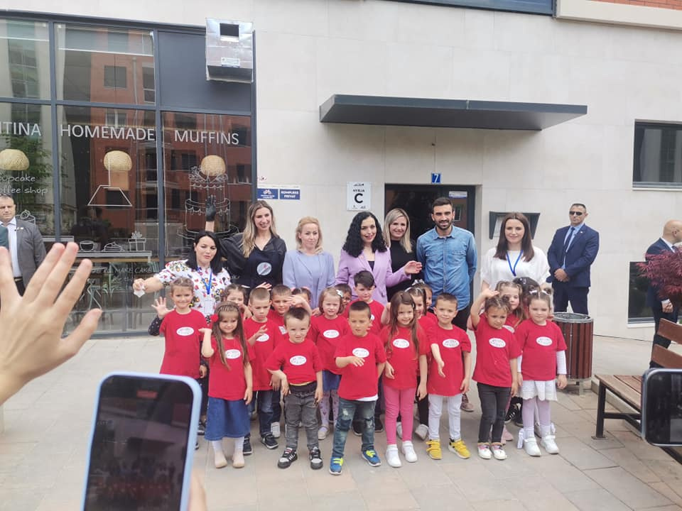 Presidentja ka gjetur kohë që të takojë një grup fëmijësh të kopshtit me bazë në komunitet “Shtëpia Magjike” që gjendet në fshatin Besi të komunës së Prishtinës.