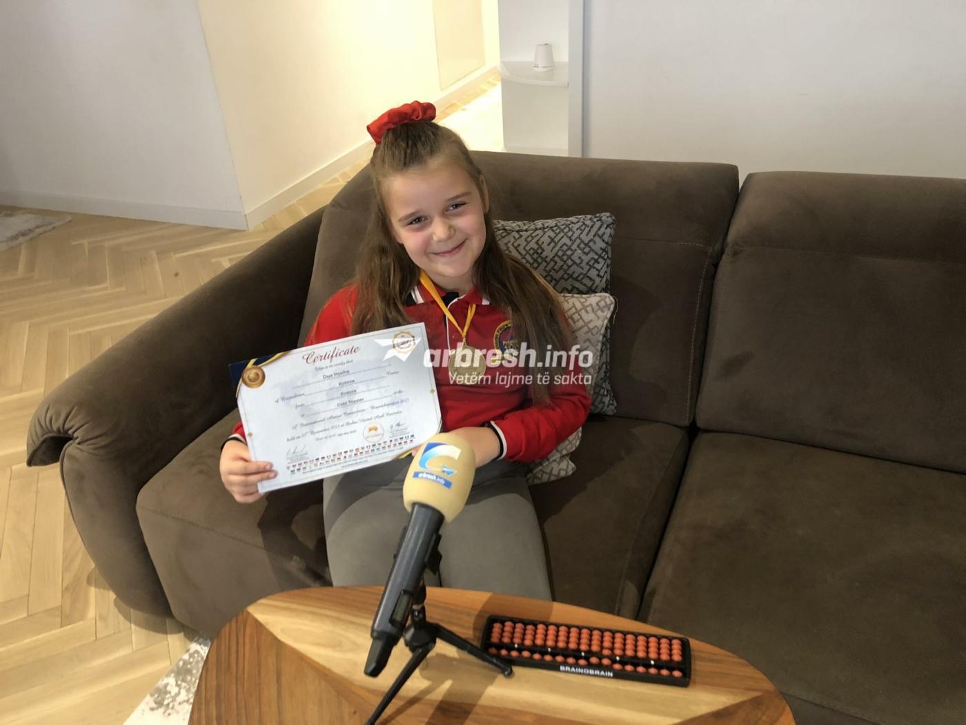 “Qysh kam qenë e vogël prindërit e mijë zbuluan talentin tim për matematikë. Realisht edhe prindërit e mij kanë njohuri për matematikën, pastaj me punë kam arrit këtu ku jam”, tregon shtatëvjeçarja.