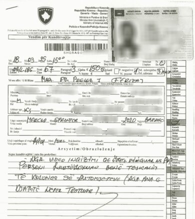 Policia ka bërë të ditur se atij i është pezulluar patentë-shoferi për tre muaj si dhe i është shqiptuar një pikë negative.