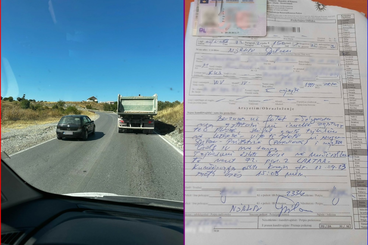 Policia Rajonale e Gjilanit ka gjobitur një shofer me 150 euro, dy pikë negative dhe ndalim i vozitjes për tre muaj pasi i njëjti në aksin rrugorë Gjilan-Prishtinë, ka bërë tejkalim në vijë të plotë.