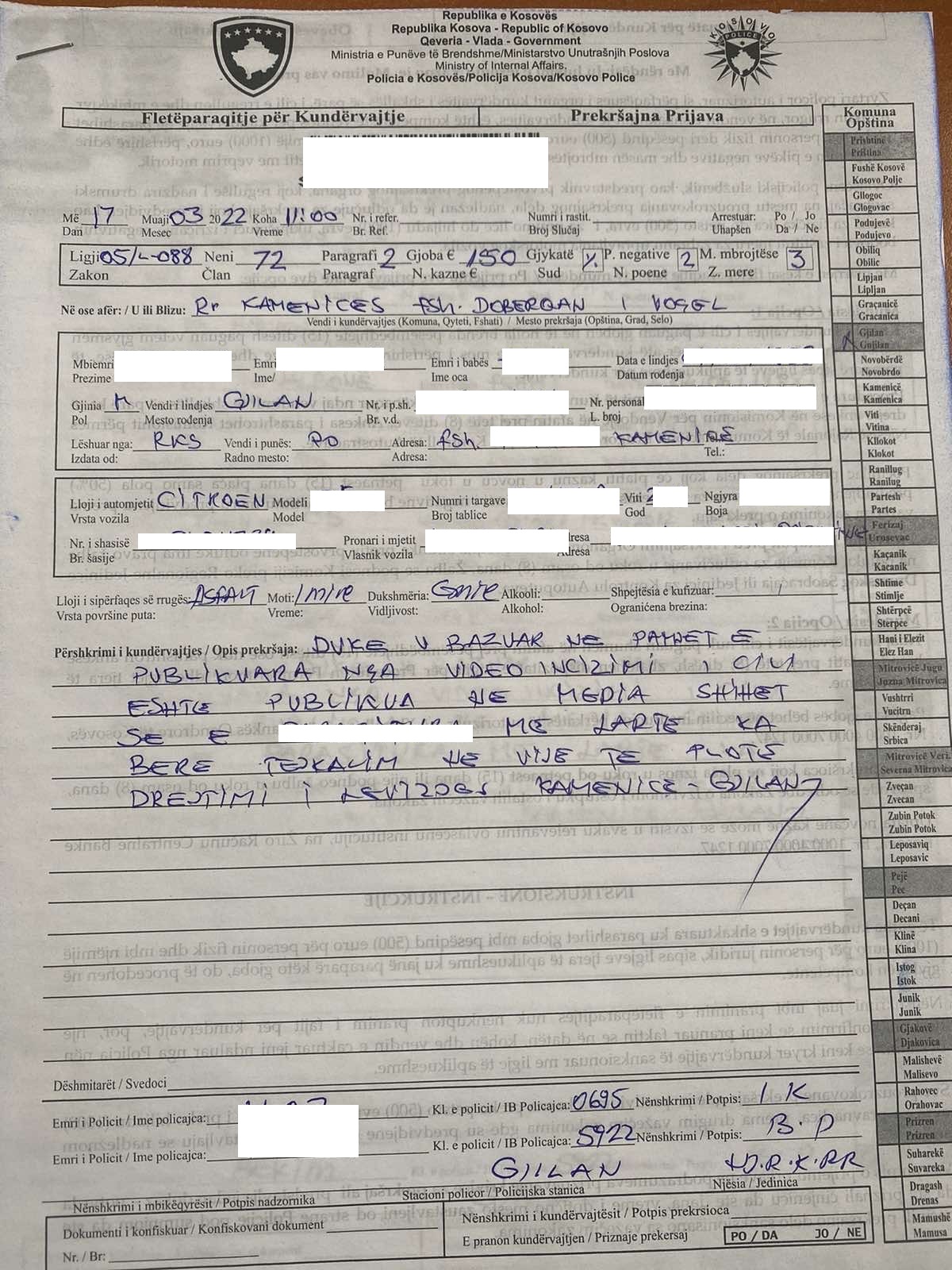 Drejtoria Rajonale e Policisë në Gjilan, ka marr veprimet e nevojshme policore dhe ka arritur të identifikojë vozitësin, i cili me automjetin e udhëtarëve, shkaktoi kundërvajtje në komunikacion, tejkalim në vijë të plotë në rrugën magjistrale Gjilan – Kamenicë në fshatin Miresh i Vogël komuna Gjilan.