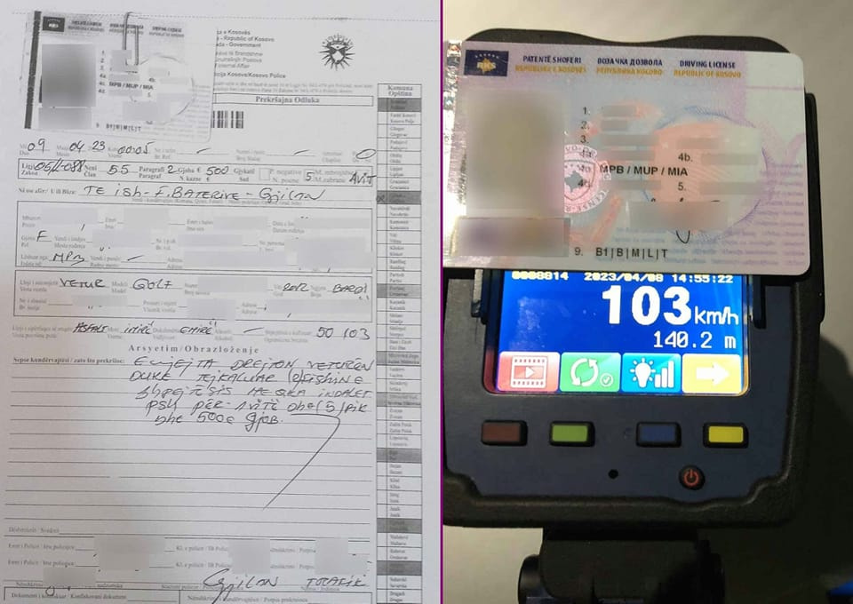 Kundërvajtësi në zonën ku kufizimi i shpejtësisë së lejuar është 50 km/h është kapur duke vozitur me shpejtësinë 103 km/h.