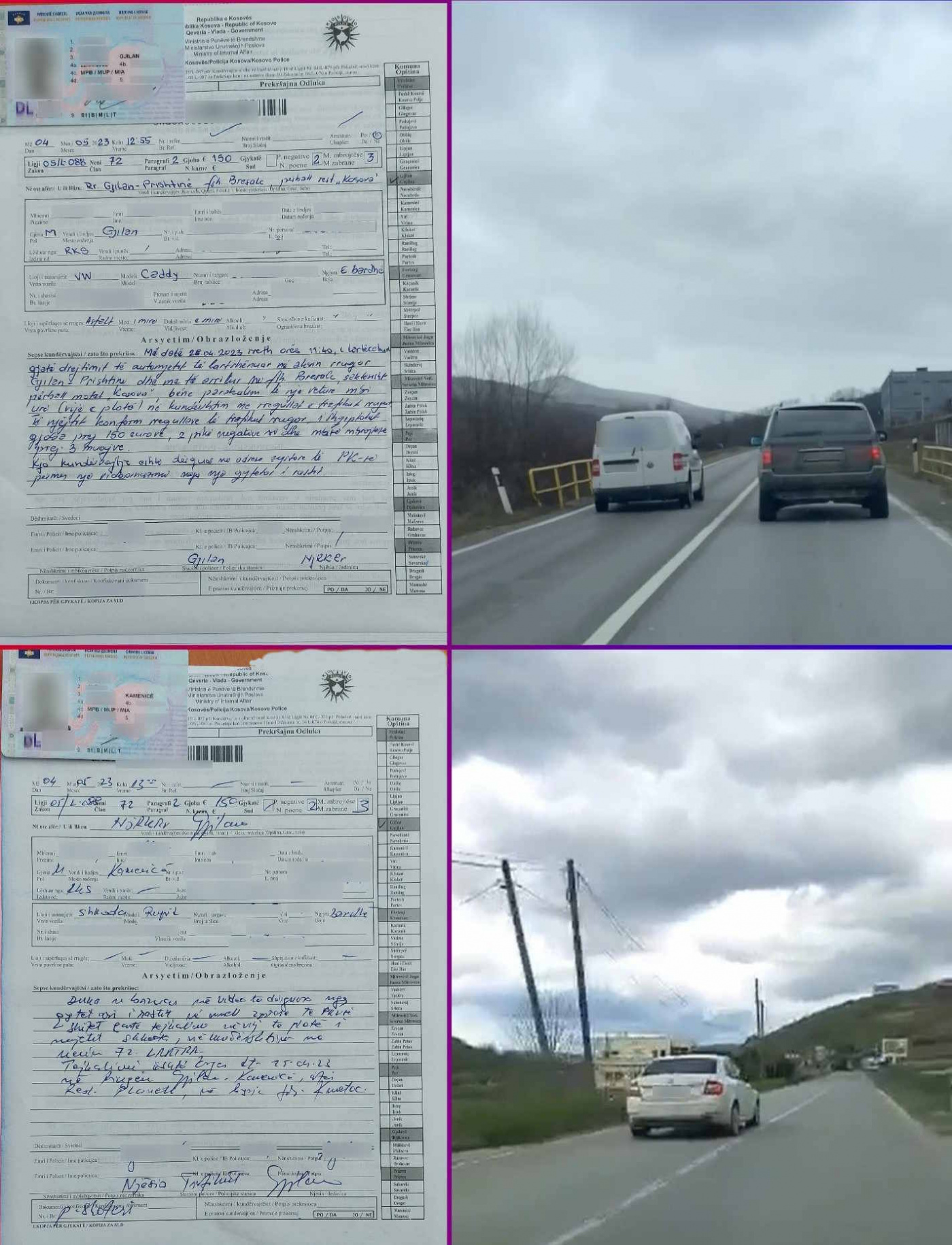 Njësiti rajonal i komunikacionit rrugor Gjilan përmes veprimeve operative ka arritur që të identifikoj të dy kundërvajtësit ndaj të cilëve ka shqiptuar gjoba për secilin veç e veç në vlerë prej e 150 euro, shqiptuar nga dy pikë negative dhe ndaj që të dy kundërvajtësve ka shqiptuar masën mbrojtëse të heqjes së patentë shoferit në afat prej tre muaj./Arbresh.info/