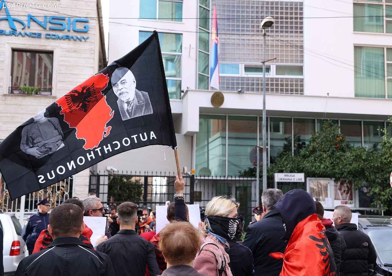 Një grup qytetarësh janë mbledhur sot para ambasadës serbe në Tiranë, duke protestuar në lidhje me situatën në veri të Kosovës.