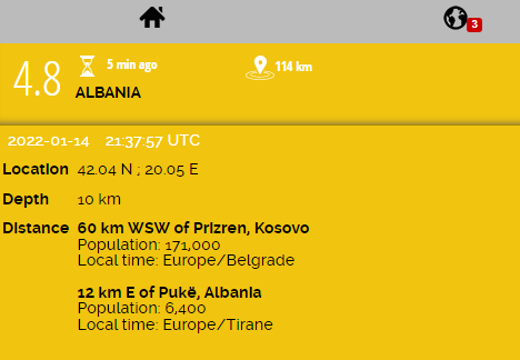 Dridhjet me shkallë Rihteri 4.8 u dëgjuan edhe në Kosovë./arbresh.info/