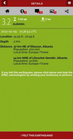 Sipas të dhënave të EMSC lëkundja ka pasur një magnitudë 3.2 të shkallës Rihter.