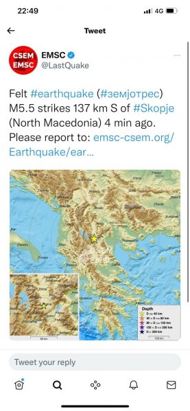 Ende nuk dihet se çfarë magnitude ka pasur tërmeti por epiqendra ka qenë në Republikën e Maqedonisë Veriore.