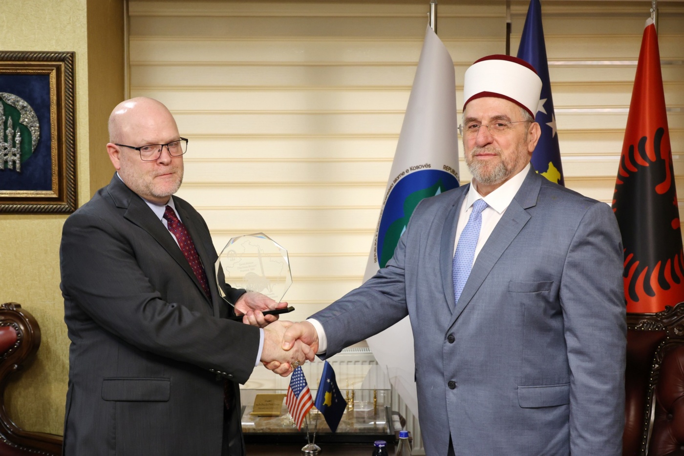 Kryetari i Bashkësisë Islame të Kosovës (BIK), Myftiu Naim Tërnava, ka pritur sot në takim lamtumirës, ambasadorin e Shteteve të Bashkuara të Amerikës në Kosovë, Jeffrey Hovenier.
