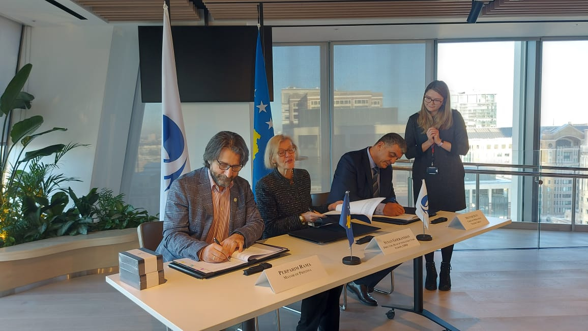 Kryetari i Prishtinës, Përparim Rama sot nënshkroi Marrëveshjen për Kredi prej 10 milionë eurosh me BERZh, në selinë e tyre në Londër, e cila do t’i jepet Trafiku Urban, kompanisë komunale të transportit publik në Prishtinë.