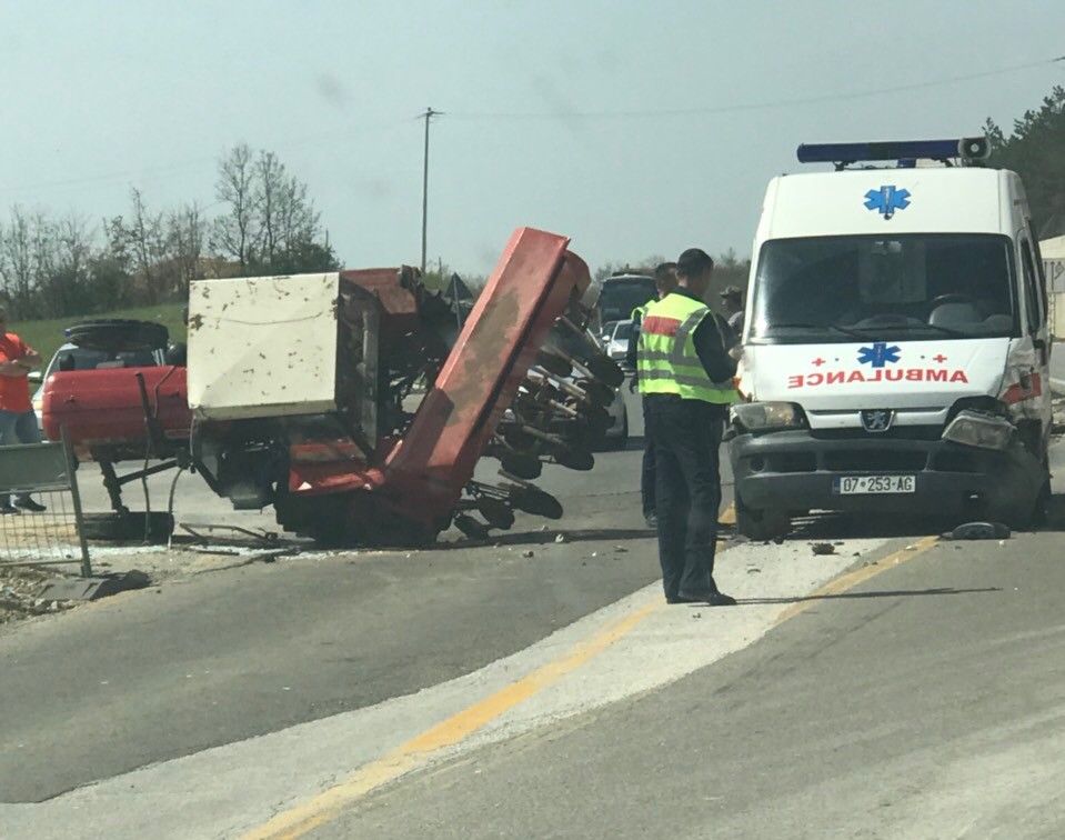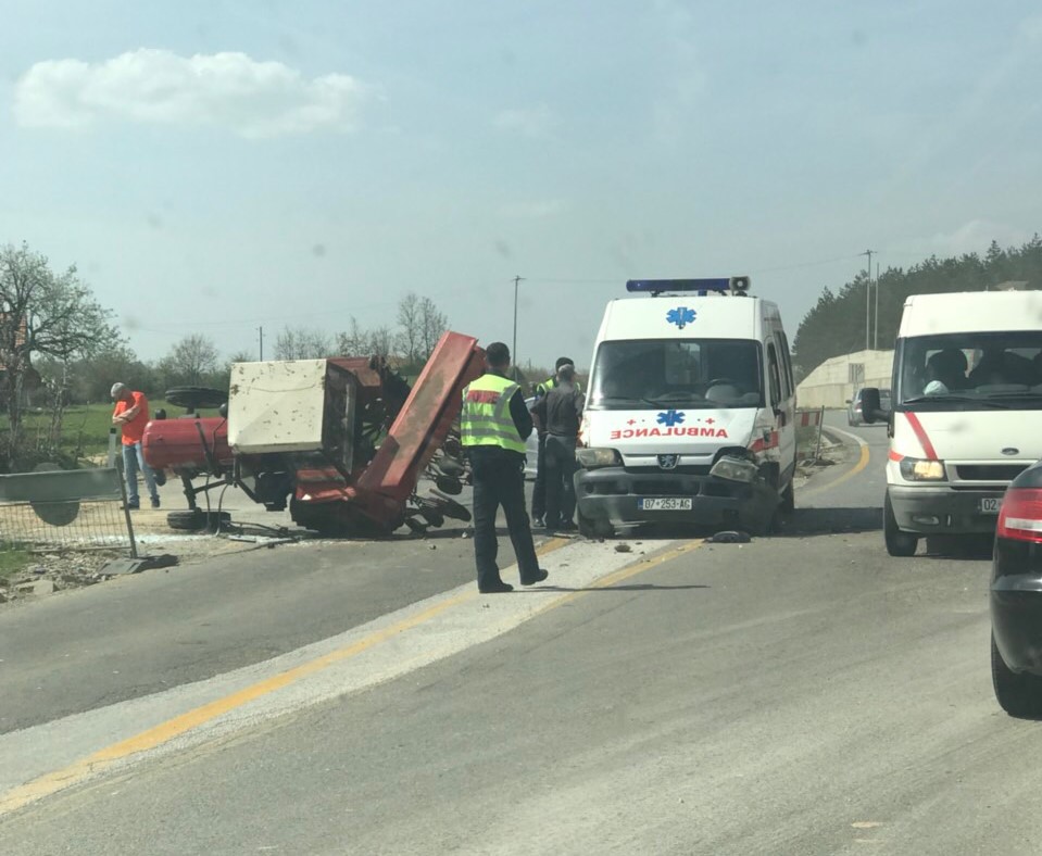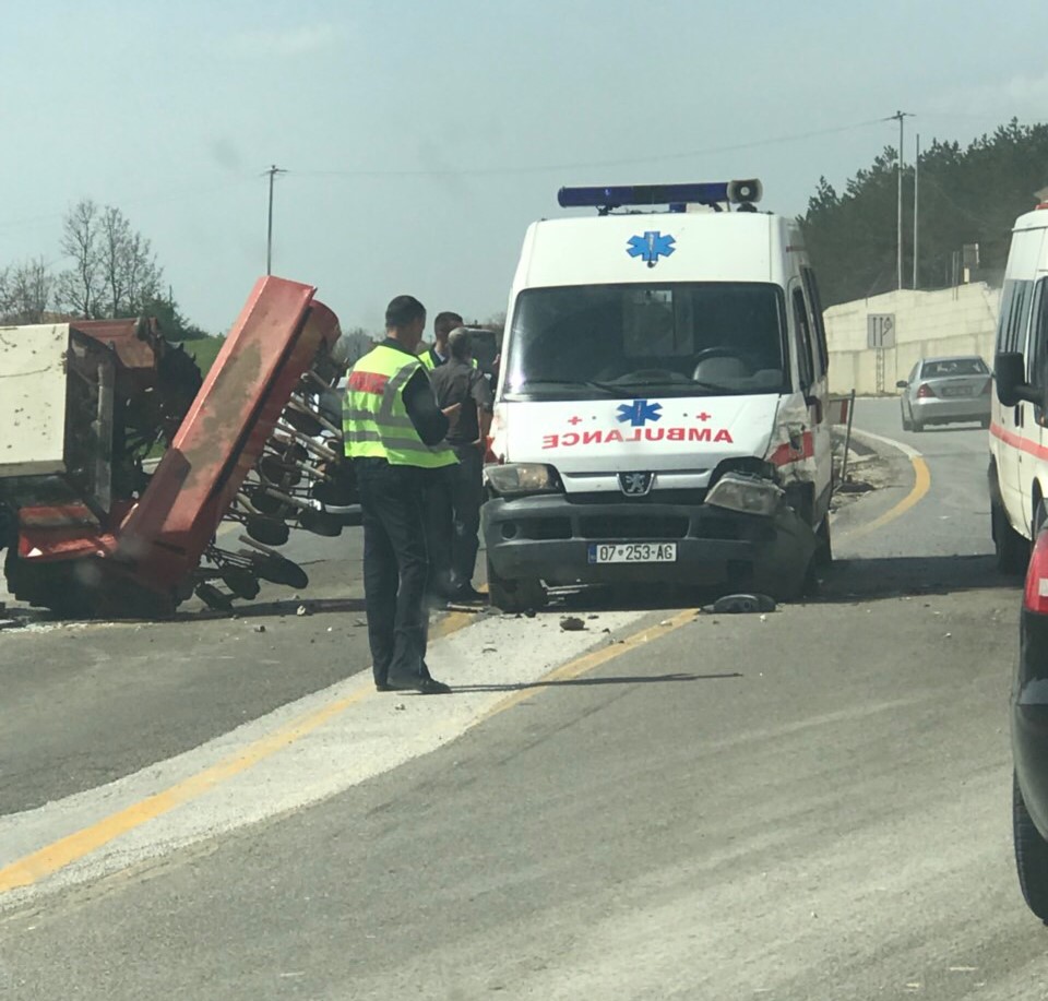 Sikur shihet në fotografitë e dërguar nga një lexues i Ekonomia Online, në aksident janë përfshirë një traktor, i cili ka mbetur i rrokullisur, dhe një automjet ambulancë.