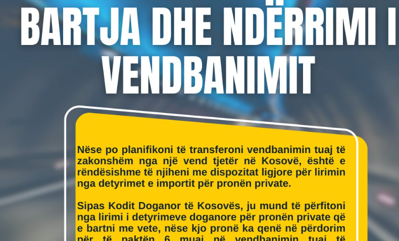 Dogana e Kosovës ka dal me njoftim sa i përket personave që dëshirojnë të transferojnë vendbanimin e tyre të zakonshëm nga një vend tjetër në Kosovë.