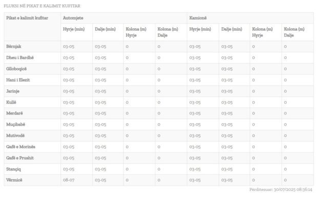 Sipas njoftimit të QKMK-së, nuk raportohen kolona apo pritje të gjata në asnjë nga pikë-kalimet kufitare.