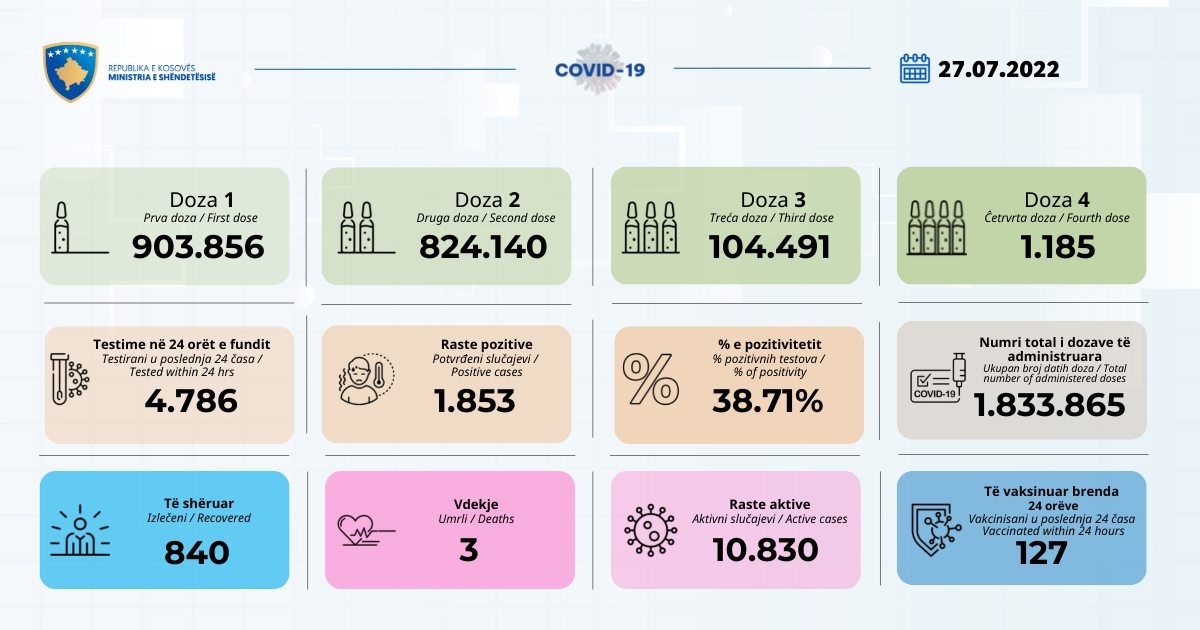 Dje janë shëruar 840 persona, ndërkaq janë dhënë 127 doza të vaksinës anti-Covid.