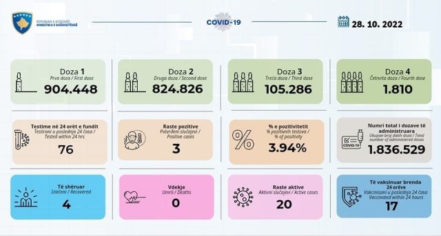 Ministria e Shendetësisë ka njoftuar se gjatë 24 orëve të fundit janë raportuar tri raste pozitive me COVID-19 në Kosovë.