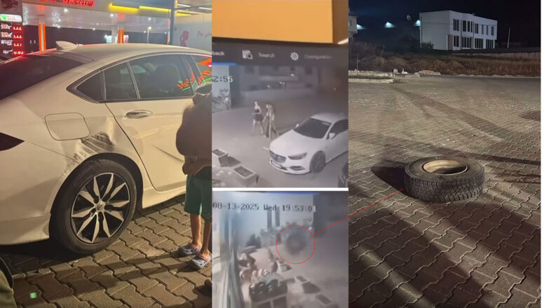 Nga forca e goditjes, goma u hodh mbrapsht dhe më pas u përplas në një automjet të parkuar, duke i shkaktuar dëme të mëdha materiale.