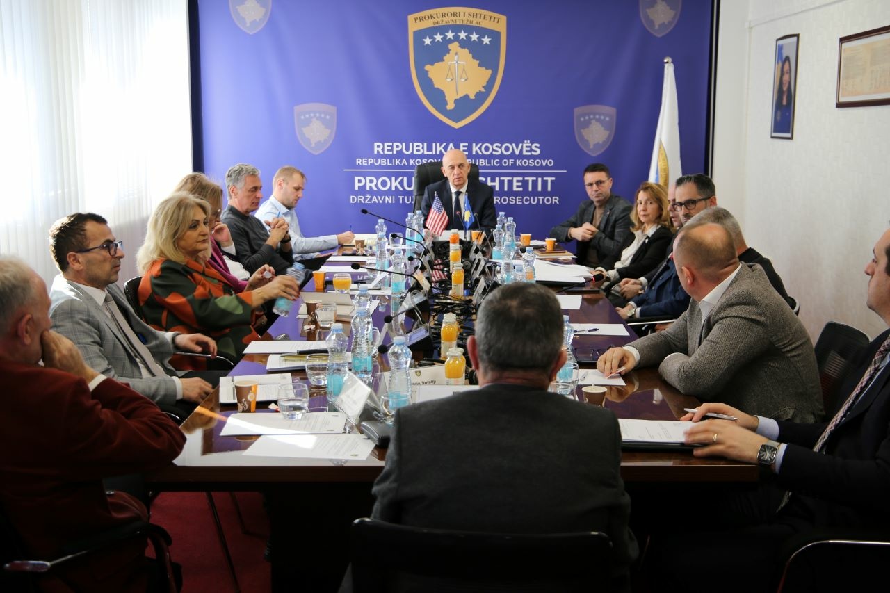 Ushtruesi i Detyrës së Kryeprokurorit të Shtetit, Besim Kelmendi, ka mbajtur kolegjiumin me kryeprokurorët dhe përfaqësuesit e prokurorive të vendit, në të cilin kanë marrë pjesë edhe prokurorët e Zyrës së Kryeprokurorit të Shtetit dhe përfaqësuesit e Ambasadës së Shteteve të Bashkuara të Amerikës në Kosovë.