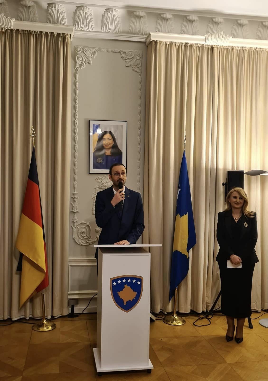 Në fjalën e tij, Ambasadori i Republikës së Kosovës në Gjermani, Faruk Ajeti, foli për marrëdhëniet e shkëlqyera historike dhe tradicionale ndërmjet Kosovës dhe Gjermanisë dhe për angazhimin e Qeveria e Republikës së Kosovës për thellimin dhe zgjerimin e mëtutjeshëm të raporteve dypalëshe.