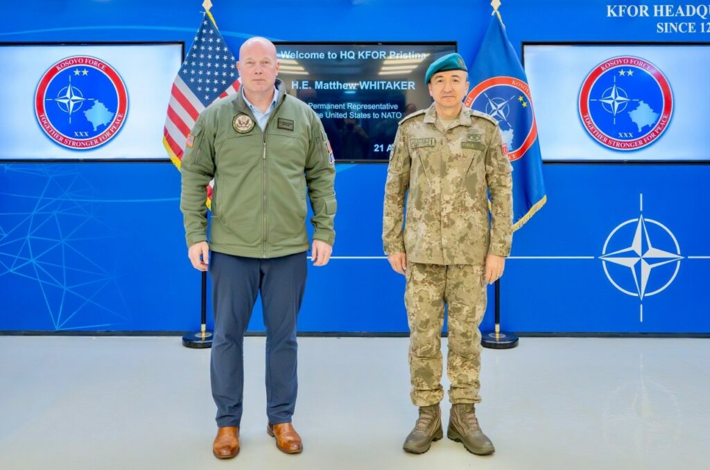 Komandanti i misionit të udhëhequr nga NATO, KFOR, Gjeneralmajor Özkan Ulutaş, mirëpriti Shkëlqesinë e Tij, Ambasadorin Matthew Whitaker, Përfaqësues i Përhershëm i Shteteve të Bashkuara në NATO, në selinë e KFOR-it në Camp Film City në Prishtinë.