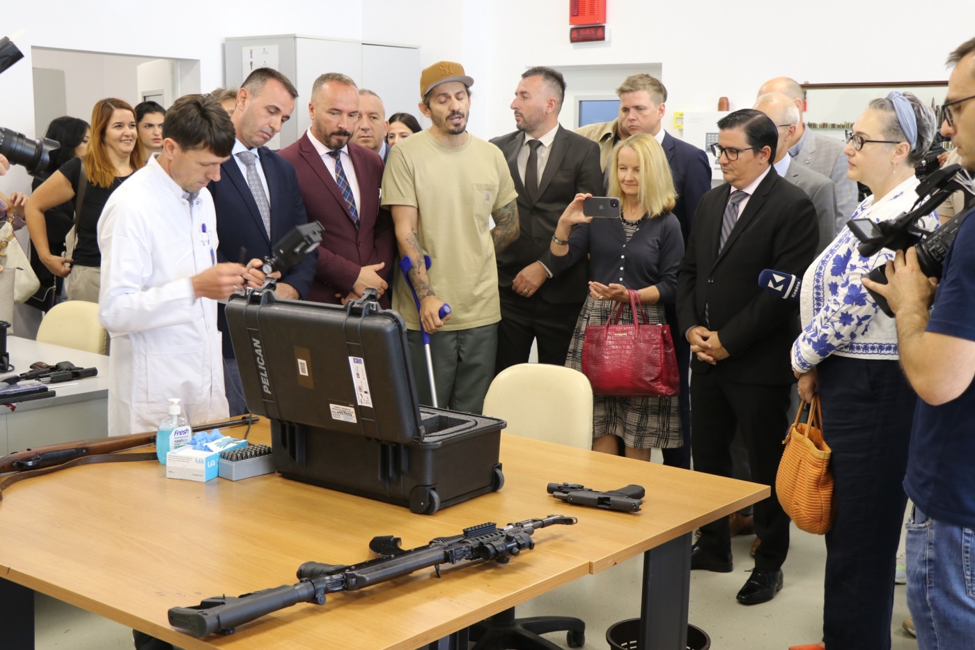 Në këtë ceremoni morën pjesë, kryesuesi i Komisionit Shtetëror për Armë të Vogla dhe të Lehta, njëherit zëvendësministër i MPB-së, Blerim Gashani, përfaqësuesi i përhershëm i UNDP-së në Kosovë, Nuno Queiro, drejtori i Agjencisë së Kosovës për Forenzikë, Blerim Olluri, përfaqësues diplomatik të shteteve që kanë ndihmuar financiarisht donacionin, si dhe zyrtarë të lartë vendor dhe ndërkombëtare.