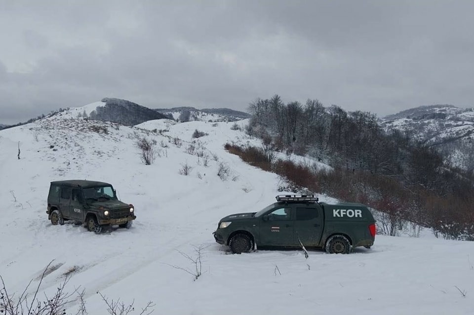 “Ushtarët letonezë dhe gjermanë të caktuar në Komandën Rajonale në Lindje të misionit të NATO-s, KFOR, kanë kryer patrullime me automjete dhe në këmbë në Zubin Potok, Kosovë”.