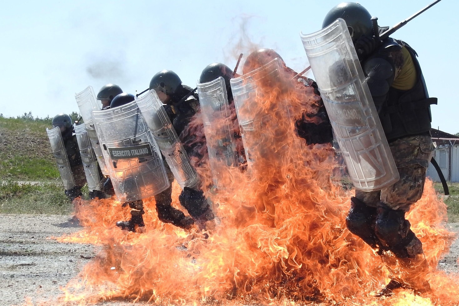 Ushtarët italianë nga Komanda Rajonale Perëndimore (RC-W) e misionit të NATO-s KFOR, në koordinim me trajnerët hungarezë nga Batalioni Rezervë Taktiç i KFOR-it (KTRBN), kanë zhvilluar një stërvitje intensive për kontrollin e turmave dhe rrahjeve (CRC) dhe frikën nga zjarri në Kampin Novo Selo.