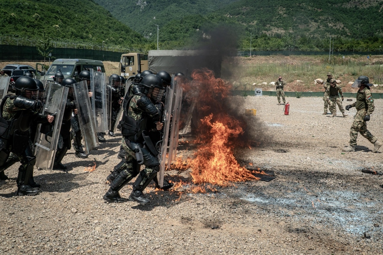Ushtarët nga Shqipëria dhe Maqedonia e Veriut të caktuar në Komandën Rajonale të KFOR-it Perëndim, zhvilluan një stërvitje intensive për kontrollin e turmës dhe trazirave (CRC) dhe zjarrfobinë në Kampin Villaggio Italia në Pejë, në koordinim me trajnerët hungarezë nga Batalioni Rezervë Taktik i KFOR-it (KTRBN).