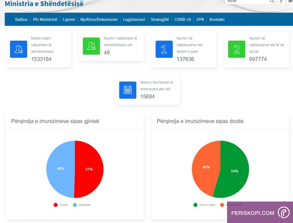 Gjithashtu sipas statistikave në faqen e Ministrisë së Shëndetësisë thuhet se për ditën e sotme janë të administruara vetëm 48 vaksina, kurse numri i terminëve që kanë bërë qytetarët është 15 mijë e 684.