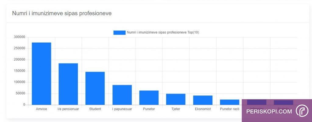 Nga numri i profesioneve të cilët prin me përqindjen e vaksinimit është amvisëria, kurse të fundit në tabelë renditen nxënësit.
