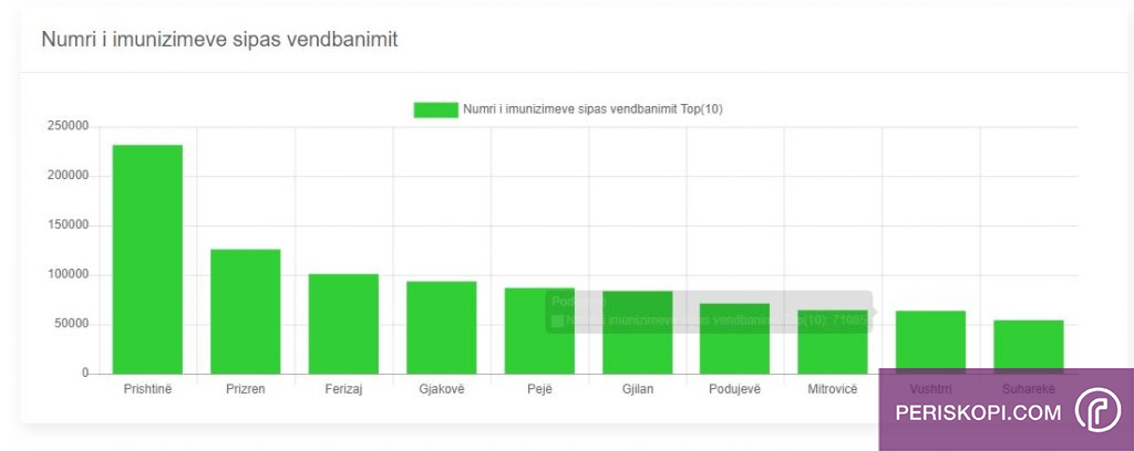 Nga vendbanimet sa i përket imunizimeve prin Prishtina me 231 mijë e 359 persona të vaksinuar, kurse e fundit është Suhareka me 54 mijë e 136.