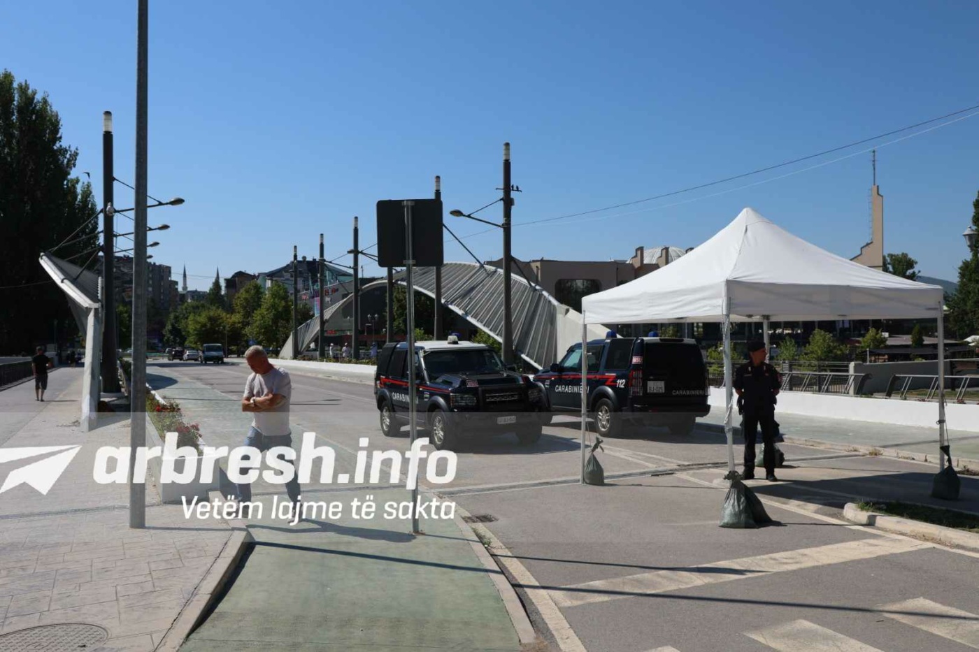 Punëtorët janë parë duke e lyer urën, përkatësisht pjesën mbi urë dhe pjesët rrethuese të saj, nën praninë e disa njësive të KFOR-it, ku karabinierët italianë kanë vëzhguar situatën.