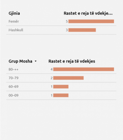 Katër të vdekur si pasojë e Covid-19 i takojnë grupmoshës mbi 80-vjeç, ndërsa 2 të tjerë 70-79 vjeç dhe një 60-69 vjeç.