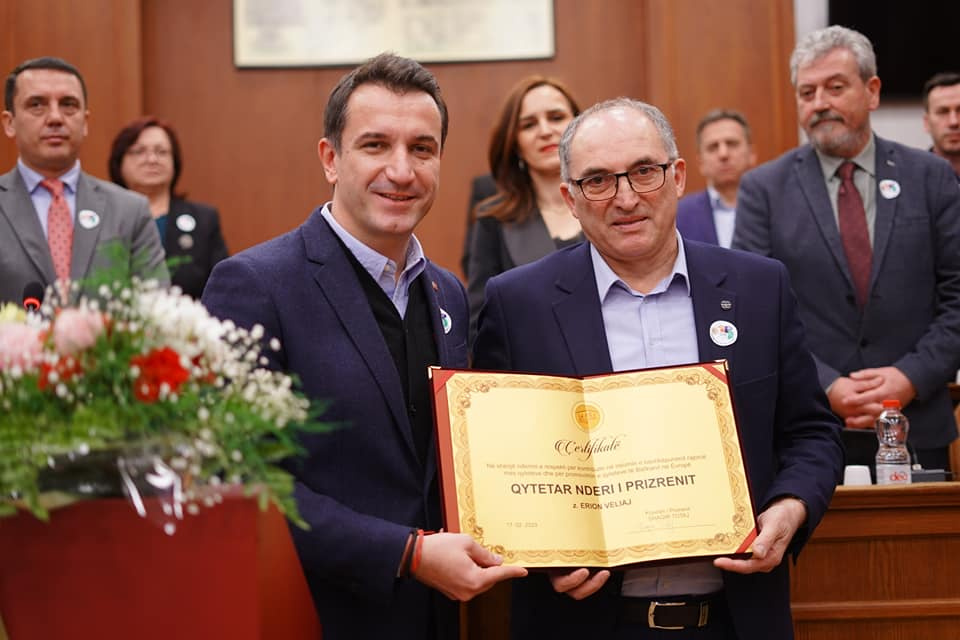 Në këtë seancë, Kryetari i Bashkisë së Tiranës, Erion Veliaj u shpall “Qytetar Nderi i Prizrenit”, në shenjë nderimi e respekti për kontributin në inicimin e bashkëpunimit rajonal mes qyteteve dhe për promovimin e qyteteve të Ballkanit në Evropë.