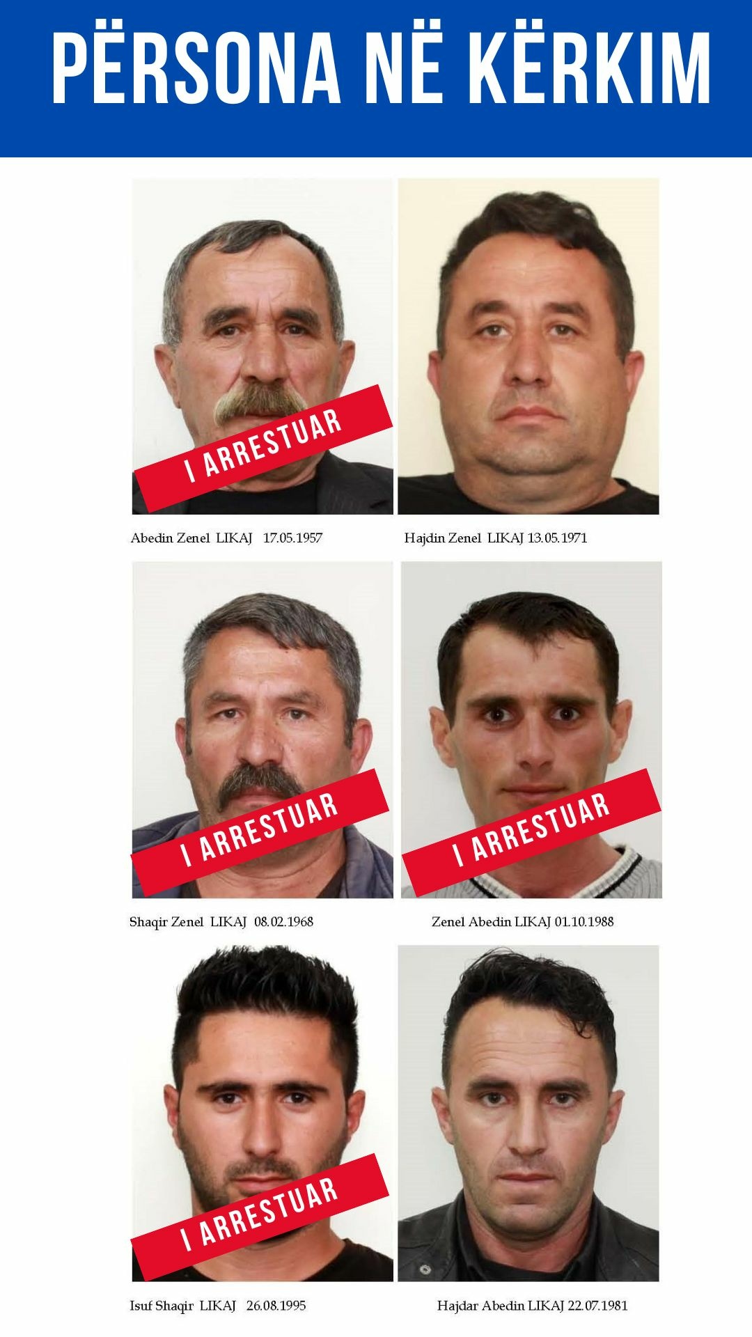 “Pas publikimit të fotove, të dyshuarit sot më datë: 28.05.2024 rreth orës 14:00 janë vetë dorëzuar në sektorin e hetimeve rajonale në Prizren. Shaqir Zenel LIKAJ 08.02.1968, Fshati Krajk komuna e Prizrenit: Zenel Abedin LIKAJ 01.10.1988, Fshati Krajk komuna e Prizrenit: Isuf Shaqir LIKAJ 26.08.1995, Fshati Krajk komuna e Prizrenit”, thuhet në njoftim.