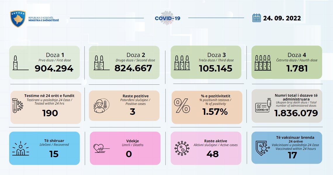 Janë shëruar edhe 15 qytetarë, derisa numri i përgjithshëm i tyre ka arritur në 268 mijë e 796. /arbresh.info/