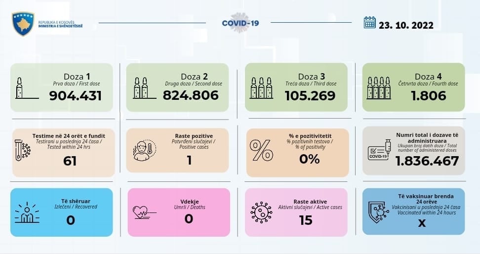 Numri i rasteve aktive është 15, teksa asnjë dozë vaksine nuk është administruar.
