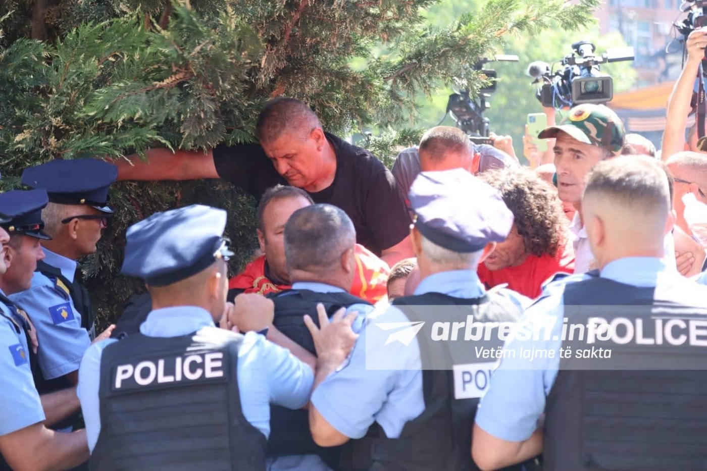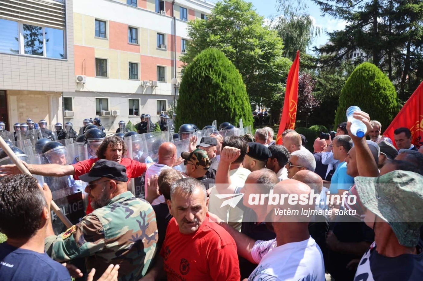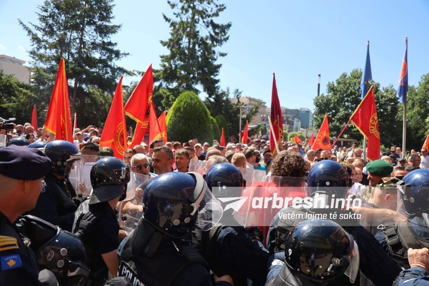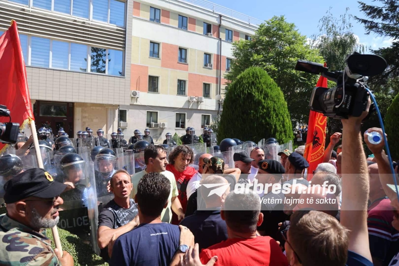 Pavarësisht se zyrtarë të shumtë të Policisë së Kosovës janë vendosur për të pamundësuar këtë, veteranët tashmë janë futur brenda oborrit të Kuvendit./arbresh.info/
