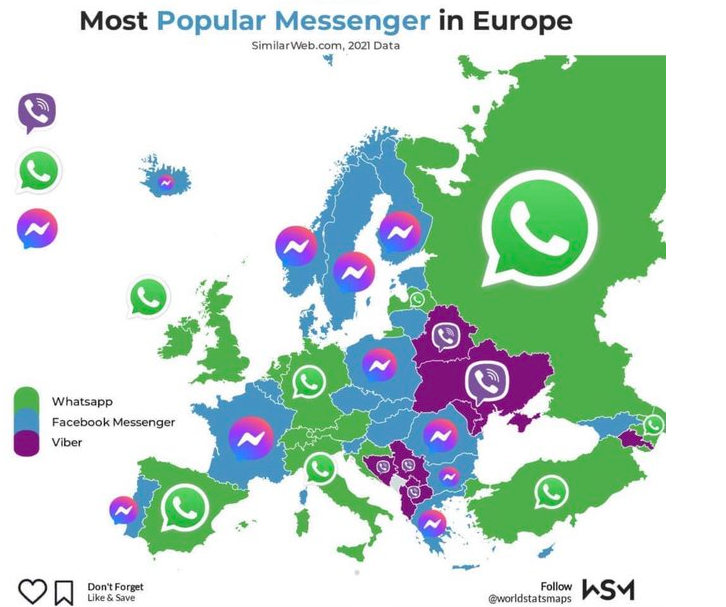 Messengeri i kompanisë Meta, dominon për nga përdorimi në disa vende të Evropës qendrore, juglindore, veriore dhe atë perëndimore.