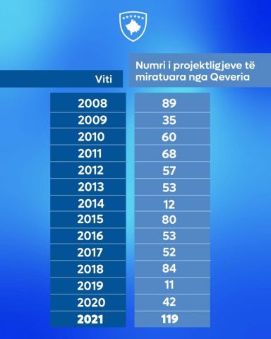 Qeveria e Kosovës e udhëhequr nga Albin Kurti, ka prezantuar numrin e projektligjeve të miratuara nga viti 2008 e deri në vitin 2021.