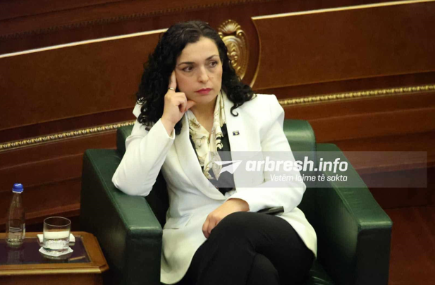 Në këtë fotografi, presidentja e vendit Vjosa Osmani duket te jetë e fokusuar krejt diku tjetër.