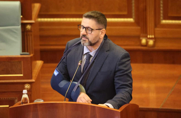 Të përkushtuar pas punës, momenti kur deputeti i AAK-së, Bekë Berisha u paraqit në seancë me dorën e thyer.